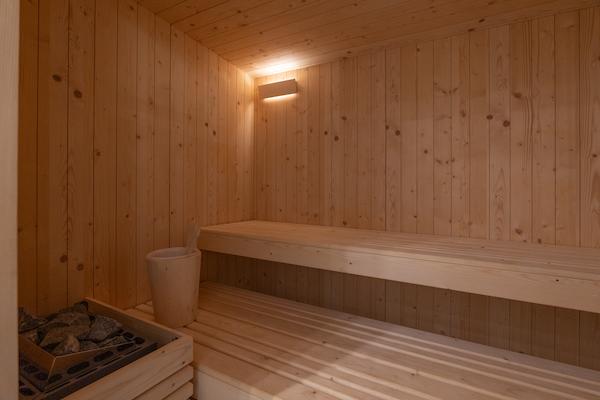 Neem een verfrissende duik in het grote, beveiligde zwembad, laat de kinderen spelen in de speeltuin of speel een potje padel op de eigen baan. Voor sportieve gasten is er een moderne fitnessruimte en voor wie wil ontspannen een sauna.